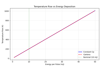ConstantCpEnergyModel- Simple, constant specific heat (low fidelity)CanteraEnergyModel- Temperature-dependent properties (high fidelity)