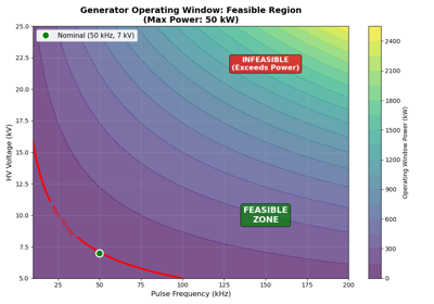 Demonstrates the HighVoltageGeneratorSystem for operating window constraints: