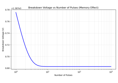 Demonstrates the RepetitivePulseBreakdownModel showing memory effects: